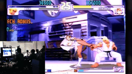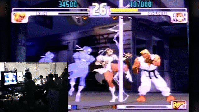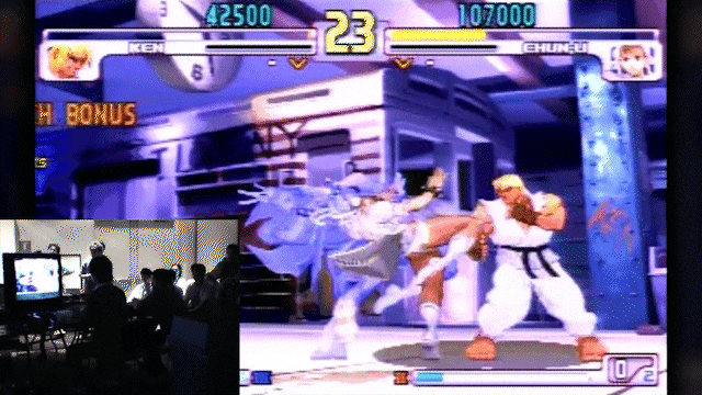 对于不熟悉格斗游戏的玩家——恭喜了,你已经看过了格斗游戏历史上最有名的一段视频。这段视频录制于2004年,仅有短短的几十秒,而且画质模糊得一塌糊涂,连我找到的这个「官方重制」版的两侧依然有丑陋的黑边。