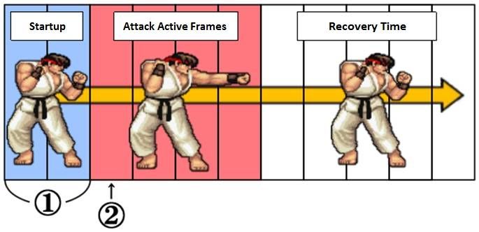 摇招式的快慢虽然在帧数的数值上差距很小,但是却能在对局中明显地体现出来。比如,如果两个玩家在近距离对局,轻拳更快,能在中、重拳发动前就击中对手并打断动作。所以即使仅仅差了1帧,一个招式可能能完全封锁对手的选择。