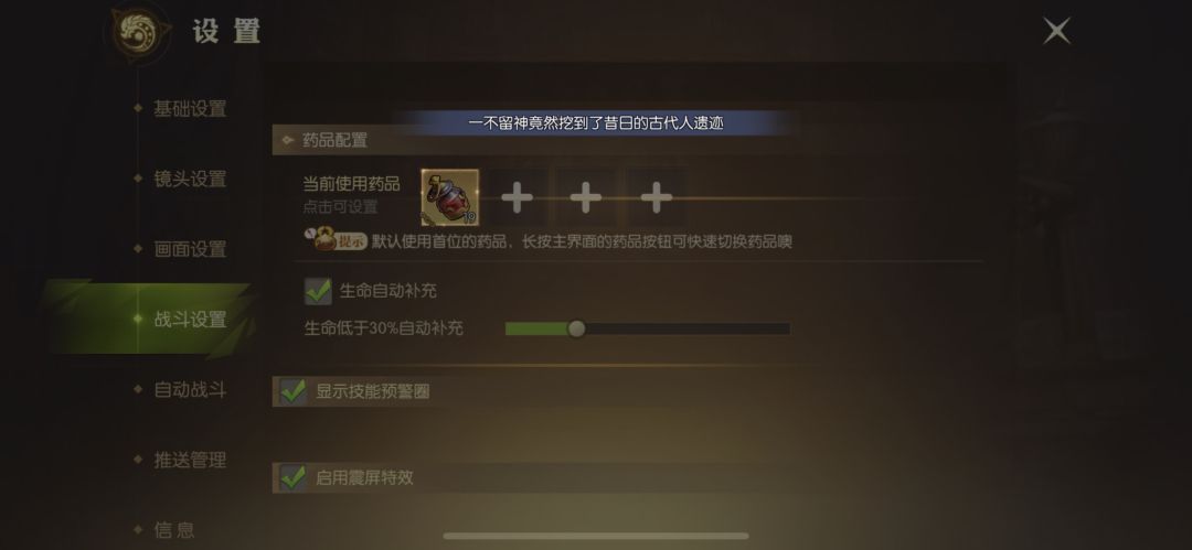 药品的使用问题,现在无论野外,还是副本,都只能在药品栏里,固定的使用一种药品。
