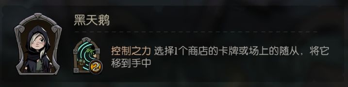 两块钱可以买怪可以回手牌,和小猫不同的是,黑天鹅可以把金的随从回手牌,毋庸置疑的强英雄。