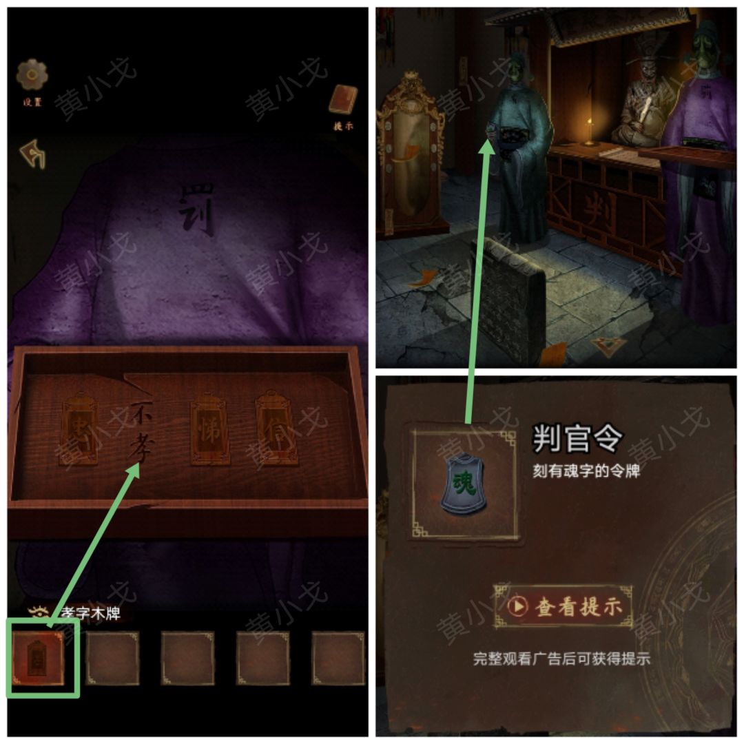 19.点击右边的阴司,放上【孝字木牌】。在左边的阴司手中获得【判官令】