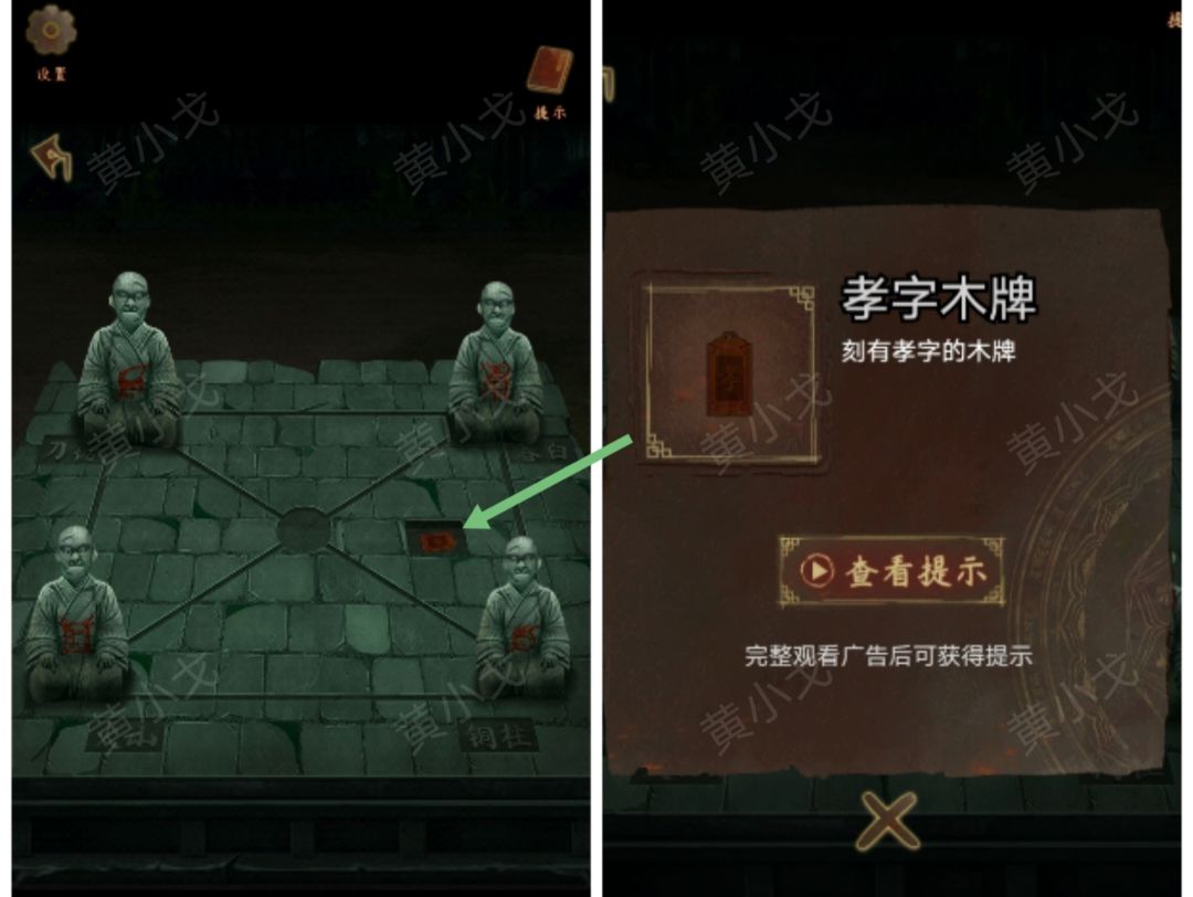 14.点击镜面,查看游戏说明,完成小游戏,接住【信字木牌】