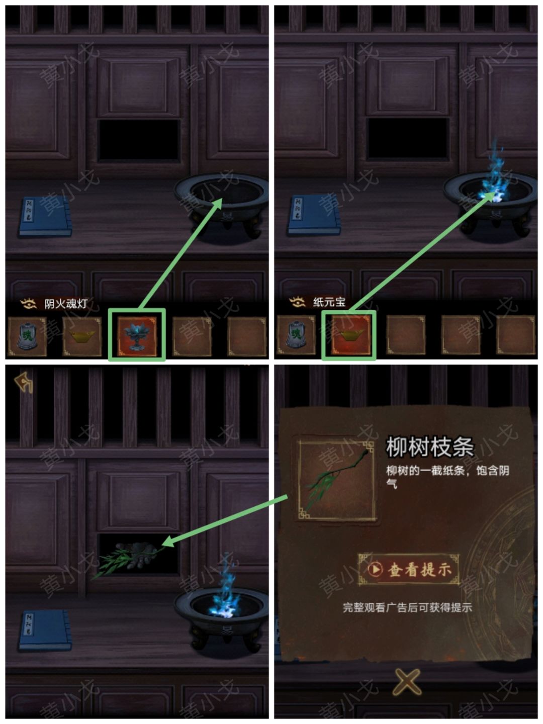 26.把【阴火魂灯】和【纸元宝】放入盆中。获得【柳树枝条】(此步骤依据《阴阳易》)
