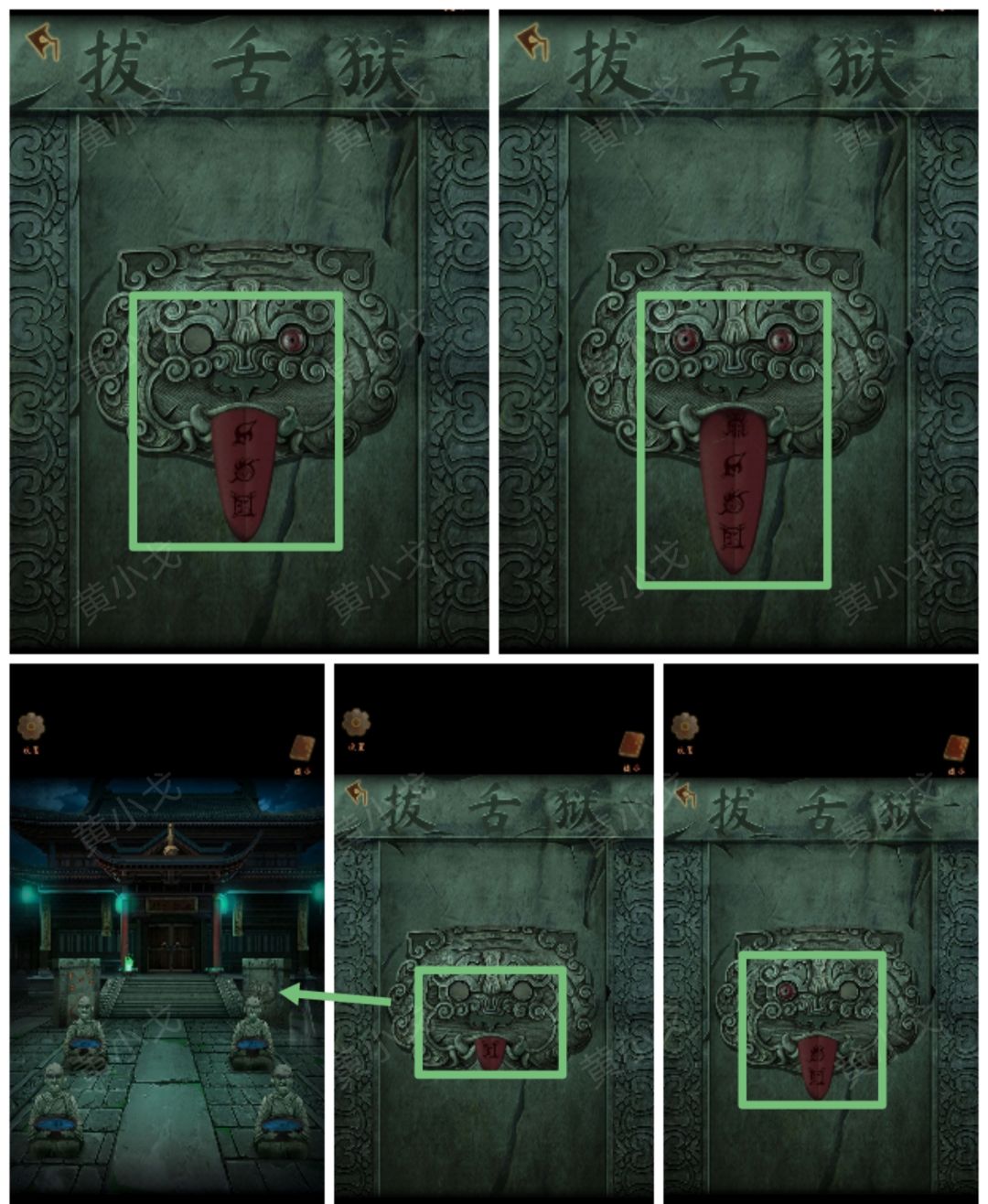 4.点击拔舌狱石墙,点击舌头(注意看舌头的长度及上面的图案和对应的眼睛的状态)