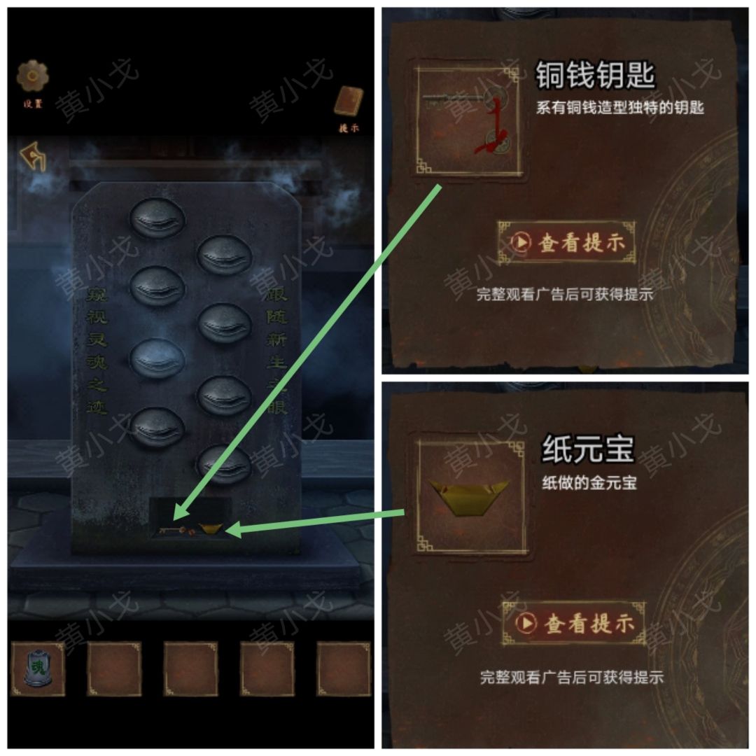22.暗格打开,获得【铜钱钥匙】和【纸元宝】