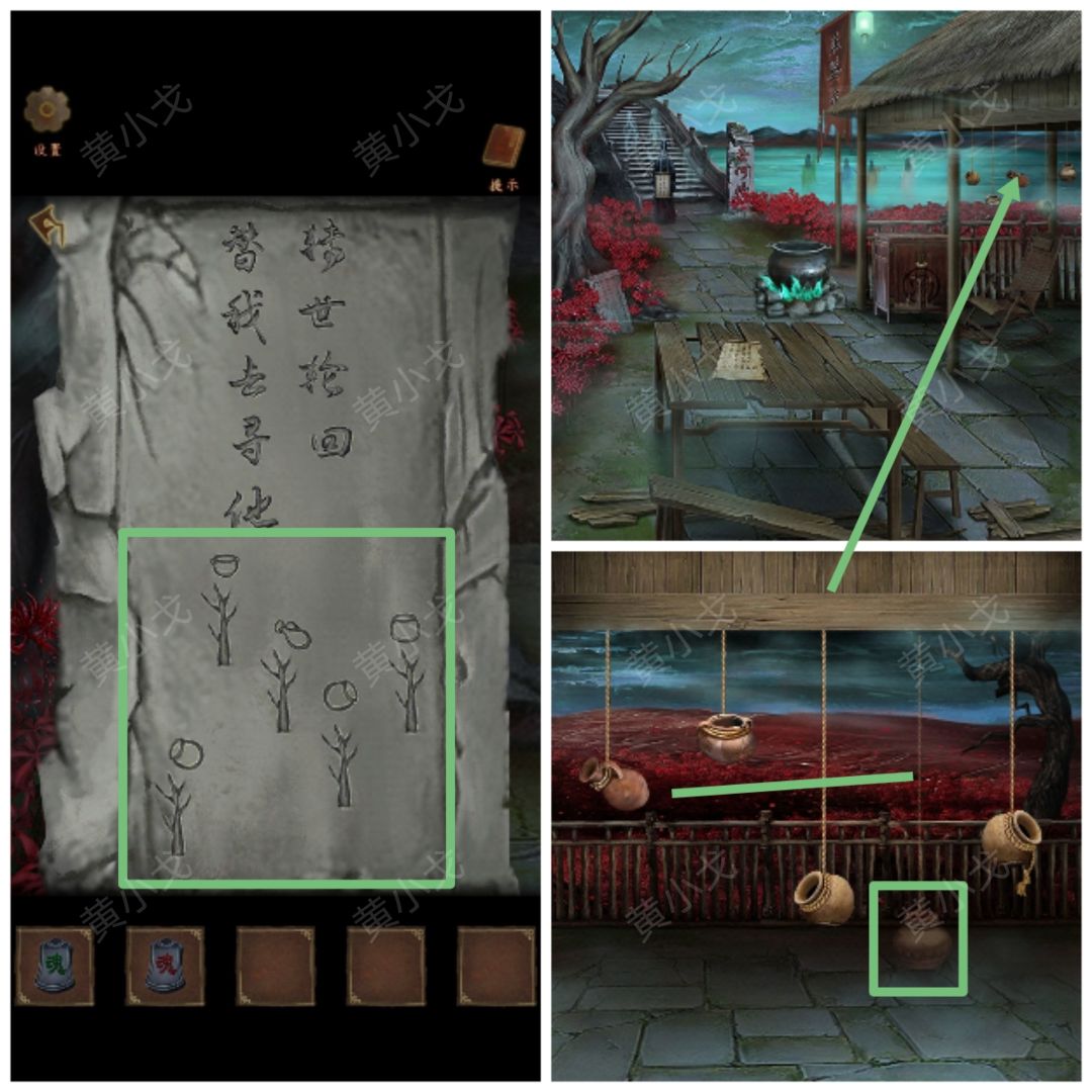 21.点击挂在茅屋上的罐子,根据石碑上的线索,调整罐子的高度