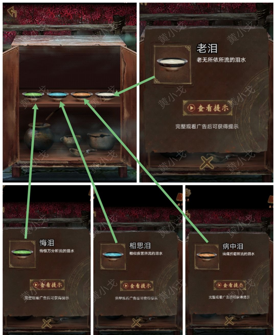 24.打开柜子,获得【悔泪】、【相思泪】、【病中泪】和【老泪】