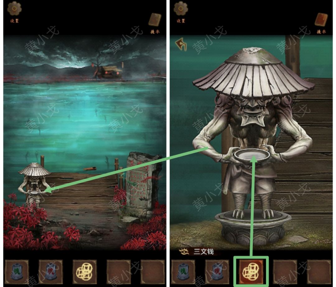15.点击雕像,把【三文钱】放入碗中