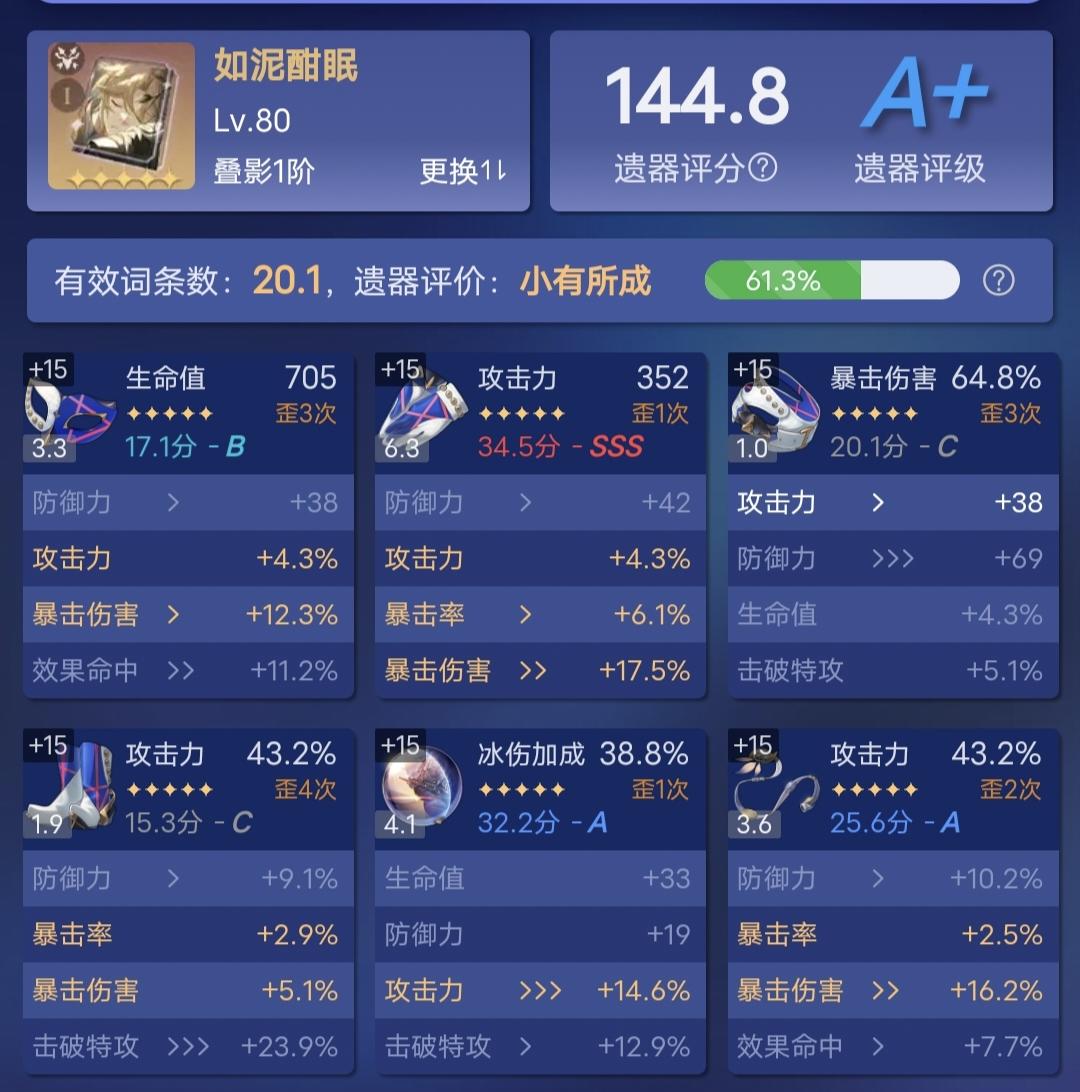 养好一个新角色太慢了,一直在刷刃的材料,感觉一直没伤害,就不敢上,遗器不好刷,不是双爆的都不升级,就只能先用老角色扛一扛,我的彦卿也不知道还能在第十层混多久。(这里伤害测评选的是85级的怪)