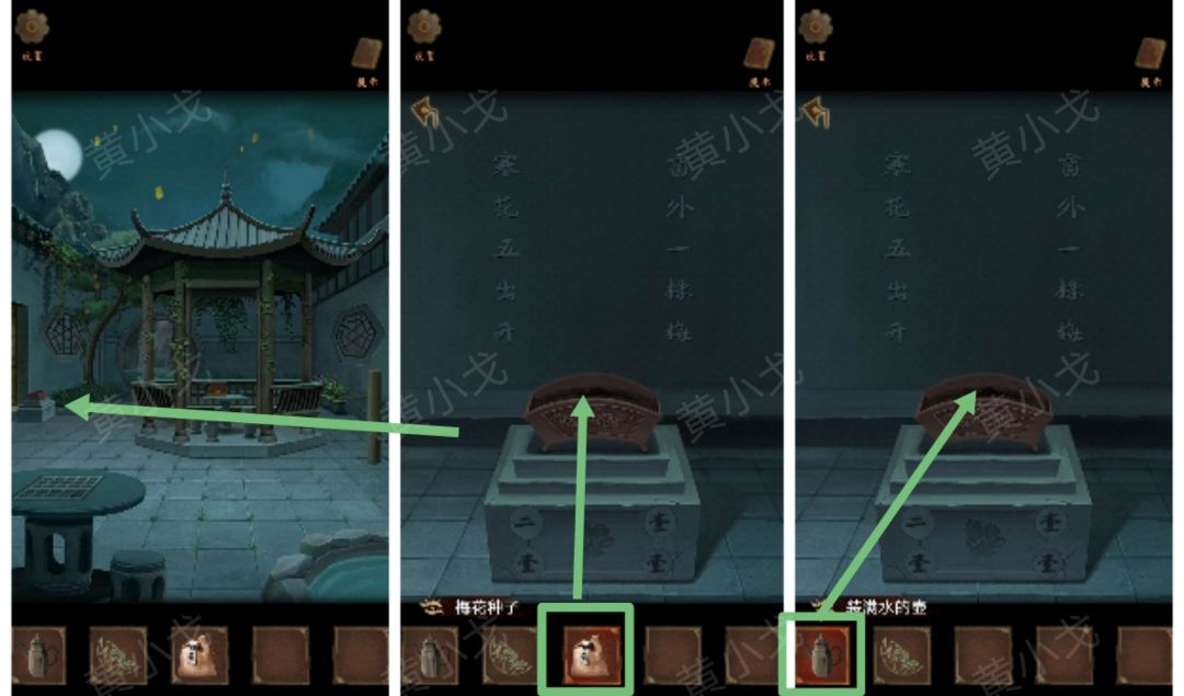20.点击花盆,放入【梅花种子】,倒入【装满水的壶】
