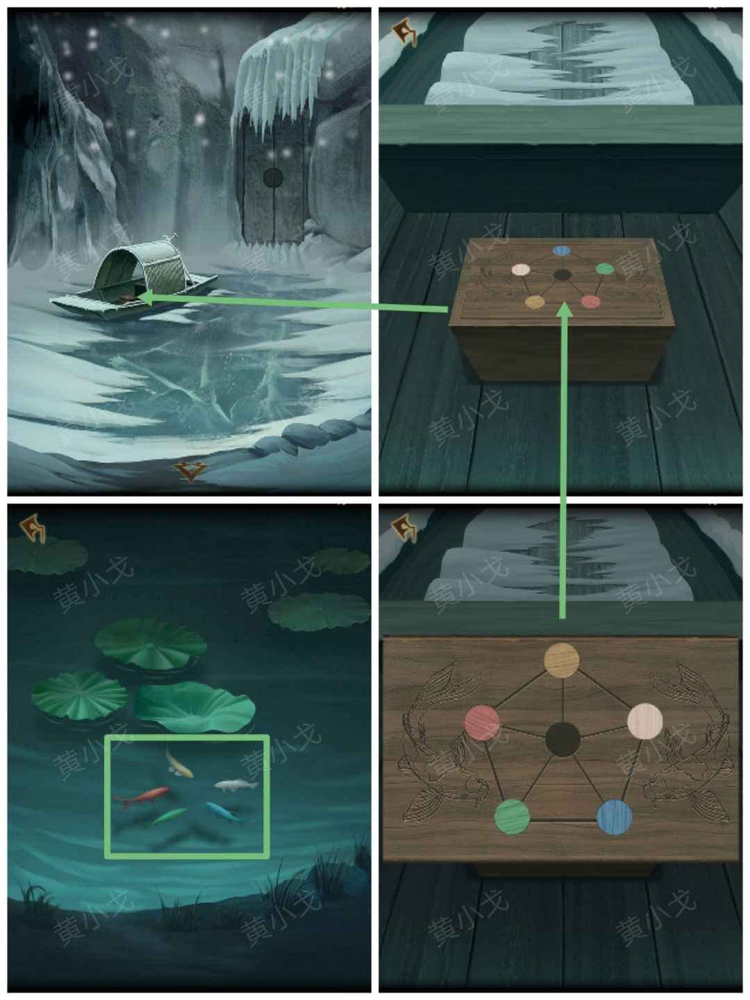 13.拿【果实】喂鱼,获得线索(鱼的颜色和位置)