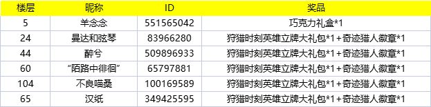 通过随机数的抽取,恭喜以下冒险者获取本次奖励,请在七个工作日内联系官方客服(QQ800181136)提供您的信息。