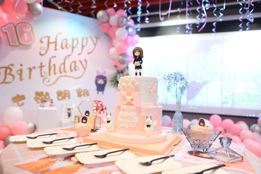 8月22日是胡桃的生日,项目组曾经在公司里为胡桃开了一场生日party。 我们在公司餐厅的一角,布置了一个少女心爆棚的区域,准备了一堆好吃的好喝的。 还为胡桃定制了蛋糕,邀请了所有与胡桃有关的同事们聚在一起为她庆生。