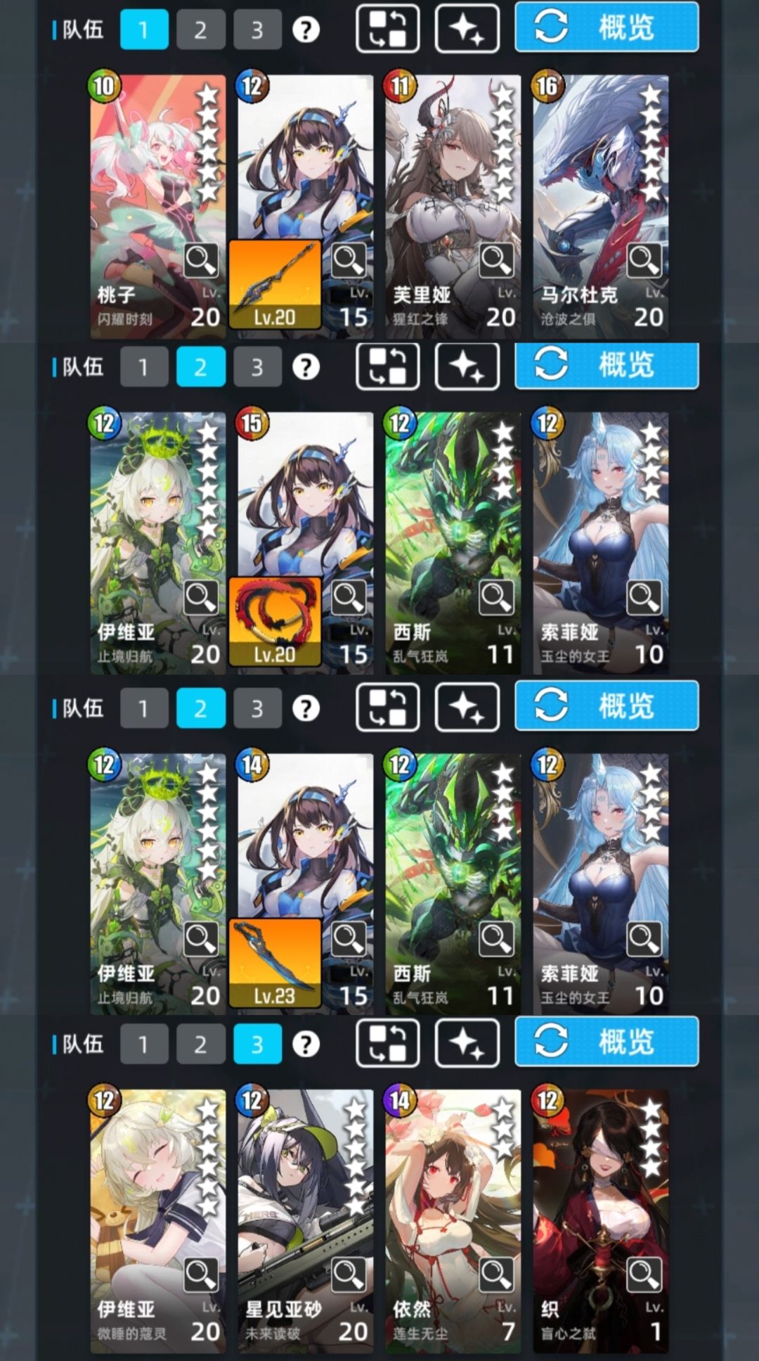 二队菲奥队。四位可沉默离玖,傲慢等。