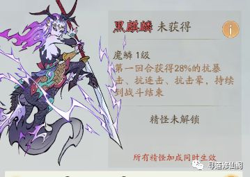 黑麒麟算是百搭的精怪,尤其是针对pvp模式,在伤害够得情况下,便可以带上黑麒麟堆战斗抗性;