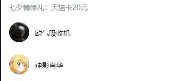 恭喜以下2位掌门获得七夕情缘礼:天猫卡20元*1