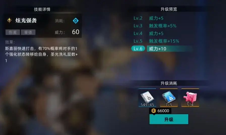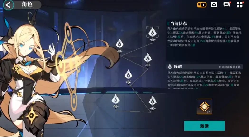 1技能单体伤害、概率偷buff、获得1层圣光洗礼层数;极限特质的1技能偷buff后还能概率加攻2回合。