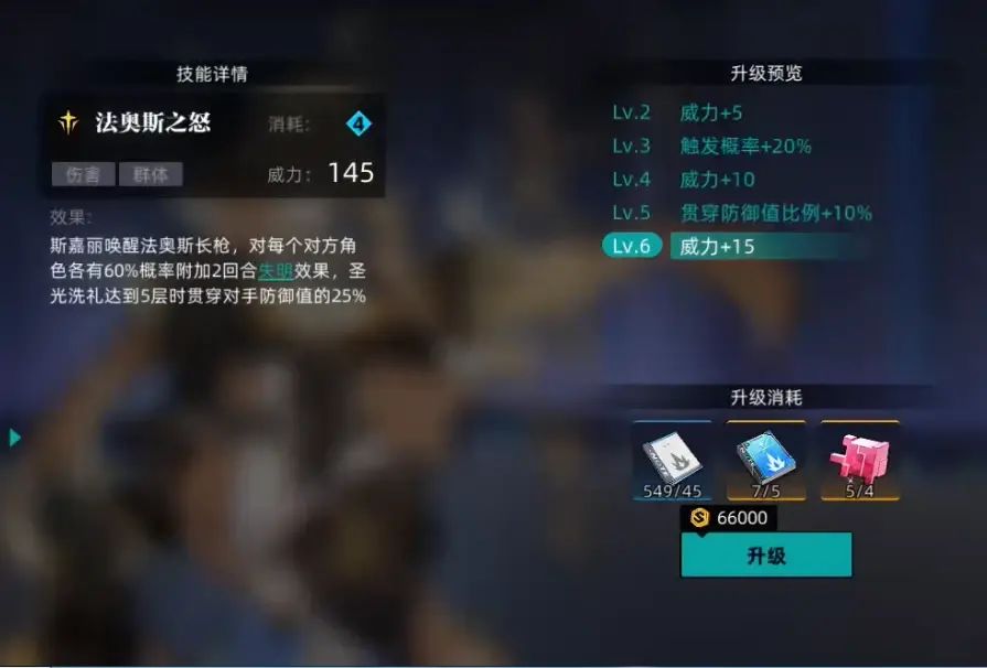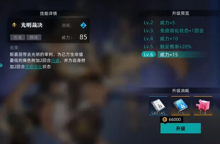 3技能全体伤害,技能需求是4个能量点,概率使目标失明,拥有5层被动圣光洗礼的情况下无视防御值;极限特质的3技能,对目标有弱化状态的角色附加固定伤害。