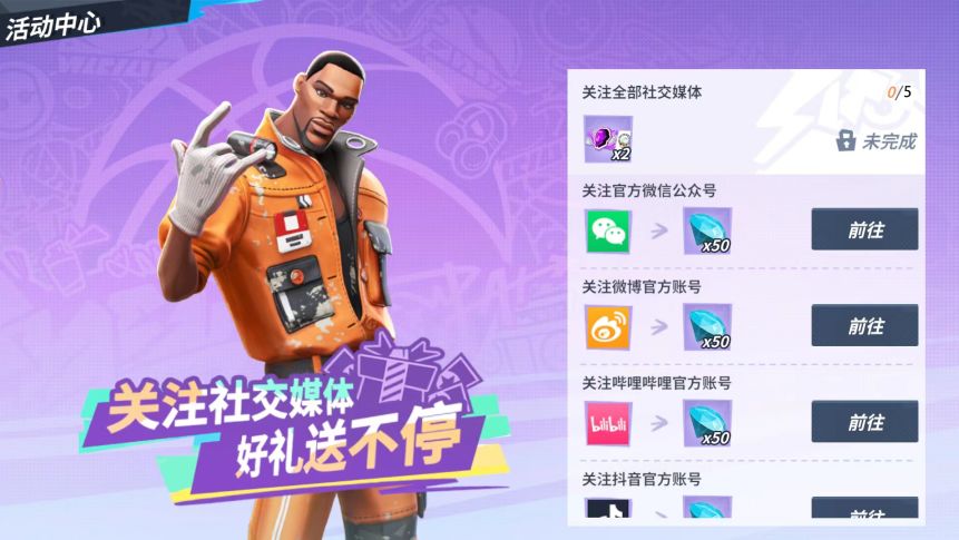 轻点手指关注社交媒体、绑定手机号,立领钻石×400、群星汇集券×4!