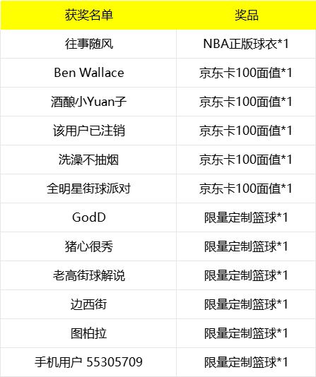 一等奖:随机选取2名街球手获得NBA正版球衣*1