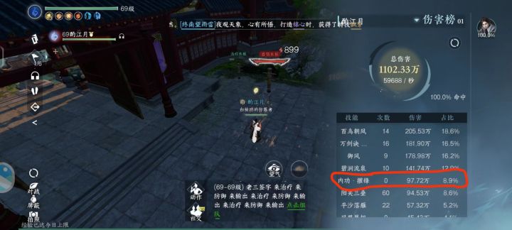 一般催锋提升5%左右,但只有卡好冷却完美吃到火龙卷+碧涧流泉/万剑决buff才能打出来8%以上的伤害。开完打虎,直接百鸟朝凤加平雁落沙起手,这样打其实有概率吃不到炽热buff但也无所谓,然后凤凰展翅火龙卷碧涧流泉万剑决。后面按着循环来就行。