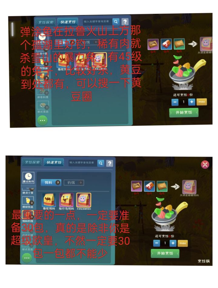 最重要的是,饲料一定要30包,一定要30包,别想着运气好只用二十多包什么的,没那个绝对的运气不要去赌啊,