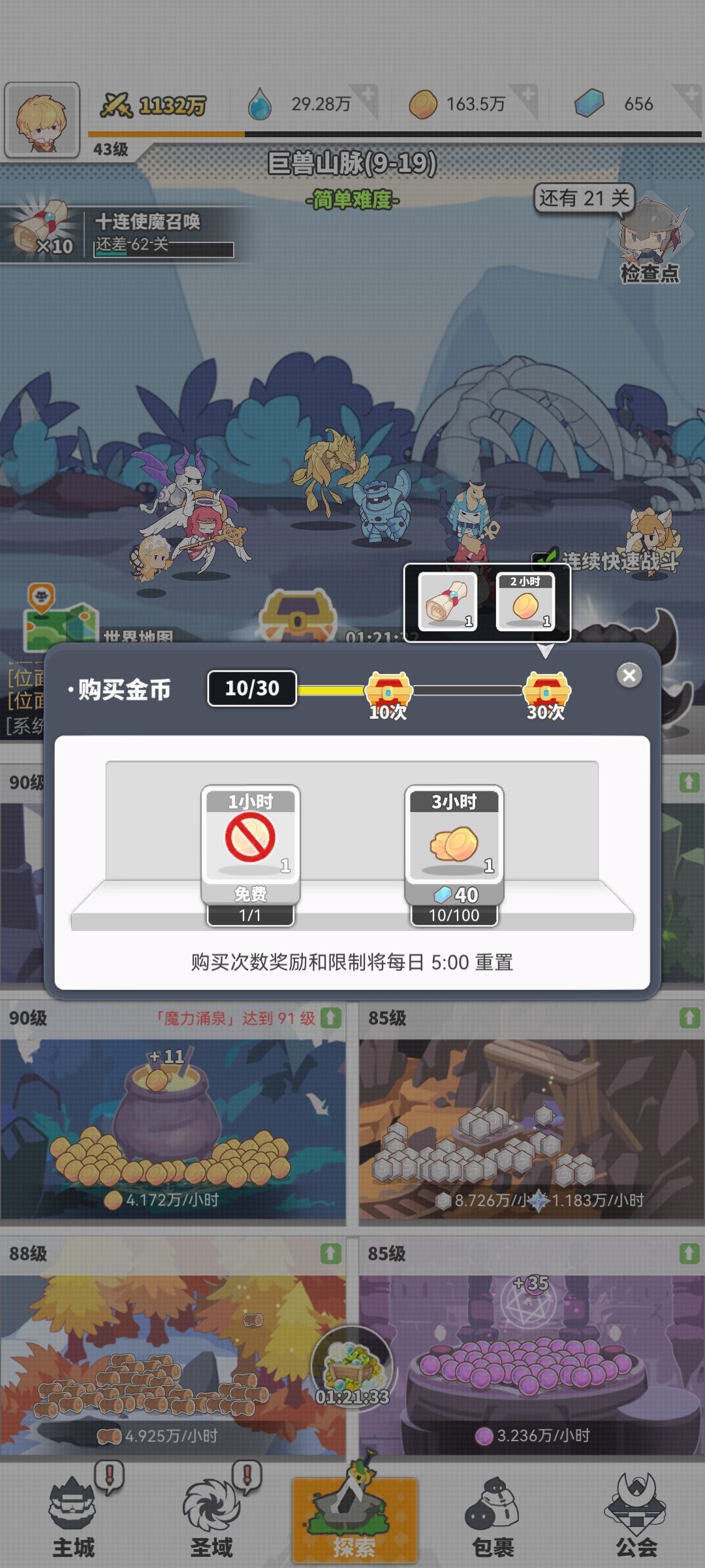 3.公会道馆建设+神兽馈赠,占用每日消费额度:140。