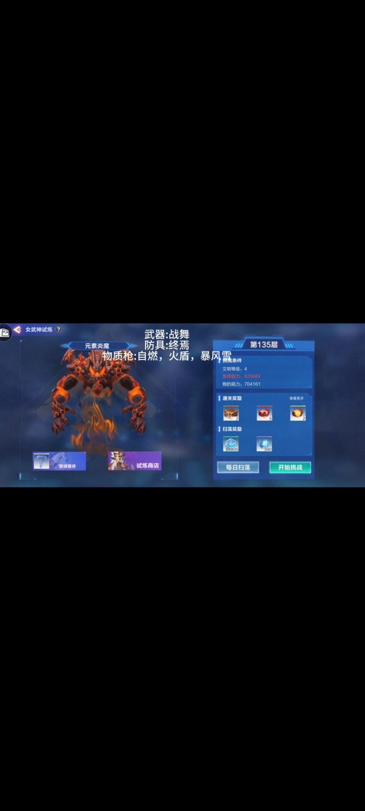 135关卡boss炎魔进入冰元素质变后会虚弱这时候他的攻击和防御都会下降不少所以利用这个机制我们就可以在相差不多的情况下通关啦