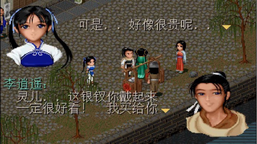 路遇小贩,灵儿想要400文买一根银钗。第一次玩到这里时,有人买了,有人嫌贵没买。