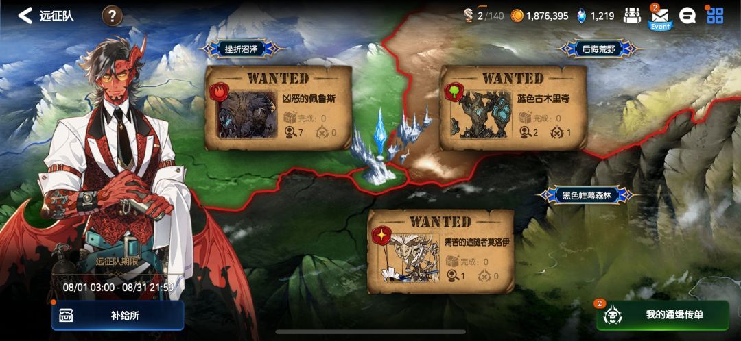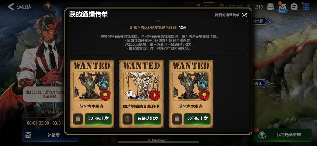 首先远征事件是由讨伐触发的,当我们完成8阶段以上的讨伐时候呢就有一定的概率掉落远征单子,随后呢我们可以发起远征讨伐(远征队,出发!!)。