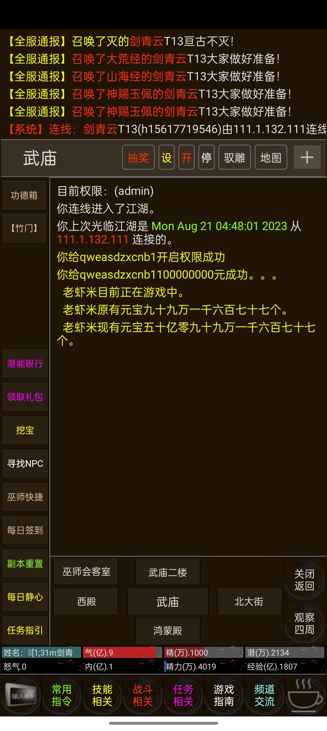 每一位玩家都可以领取大量元宝福利,八月份已经发出大约每人一千五百亿元宝,加群才可以领取呦