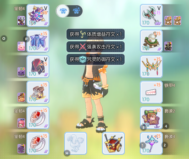 补充一个细节:由于心动把宠物削成了呆逼,所以很多时候果冻都会发呆,这里可以通过改变果冻放的技能来控制它的操作。带了普攻的果冻会一直追着别人直到自己石化,不带普攻就类似原地警戒,有人进入攻击范围才会攻击。如图所示: