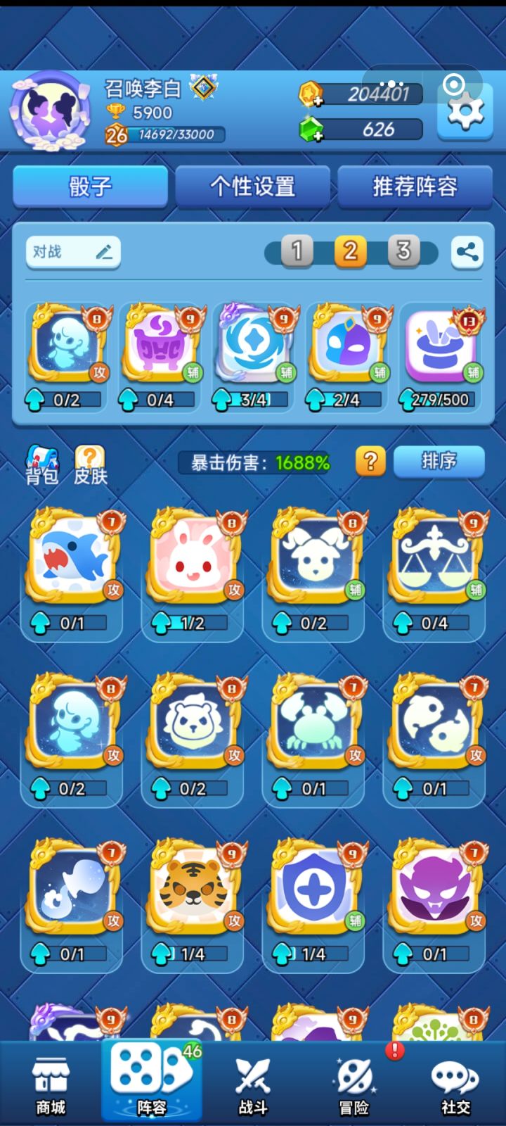 3、关于卡,自选礼包优先处女座(竞技场冲分、单人挑战打35、魔力圈圈)、狮子(合作懒人挂机),其他就是巨齿鲨、吸血鬼强度可以,但是玩起来又累又费时,抽到了没咋玩
