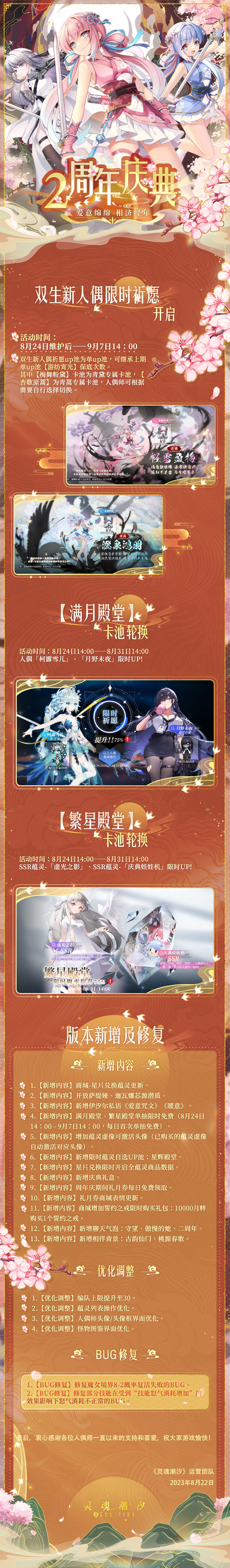 《灵魂潮汐》8月24日全新2周年版本【绮旅不渝】强制更新维护公告 二周岁生日快乐!