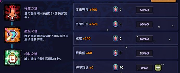 对于魂点不够用的同学,在满足穿透和暴击的前提下,各项属性平均分配点取,或者可根据自己面板来自己调整加点~
