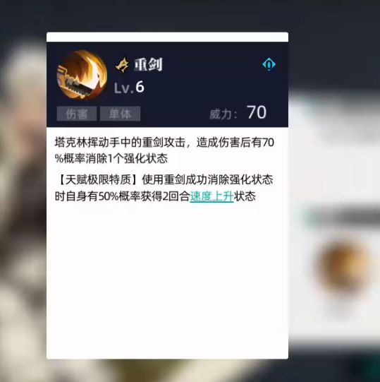 不消耗能量的1技能单体伤害还有高概率消除目标的增益状态,天赋的1技能对目标减速会概率自身获得加速2回合。