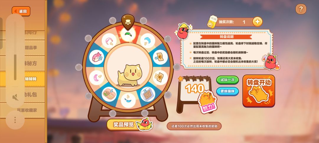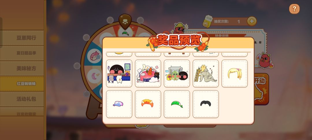 需要抽奖券抽取“联动花园装扮”9个及“豆崽皮肤装扮”5个,需要养一个高魅力值猫咪(红小豆或其他),可以让转盘更稳定,避免抽出大量垃圾
