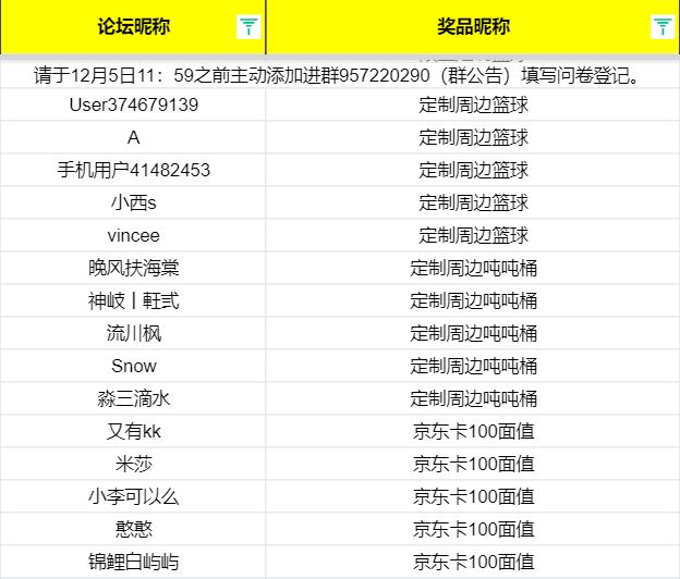 恭喜以上玩家获得活动奖品,请于12月5日11:59之前主动添加进群并填写问卷登记。