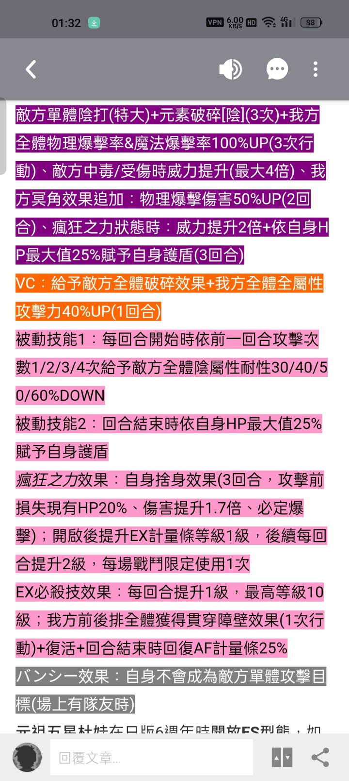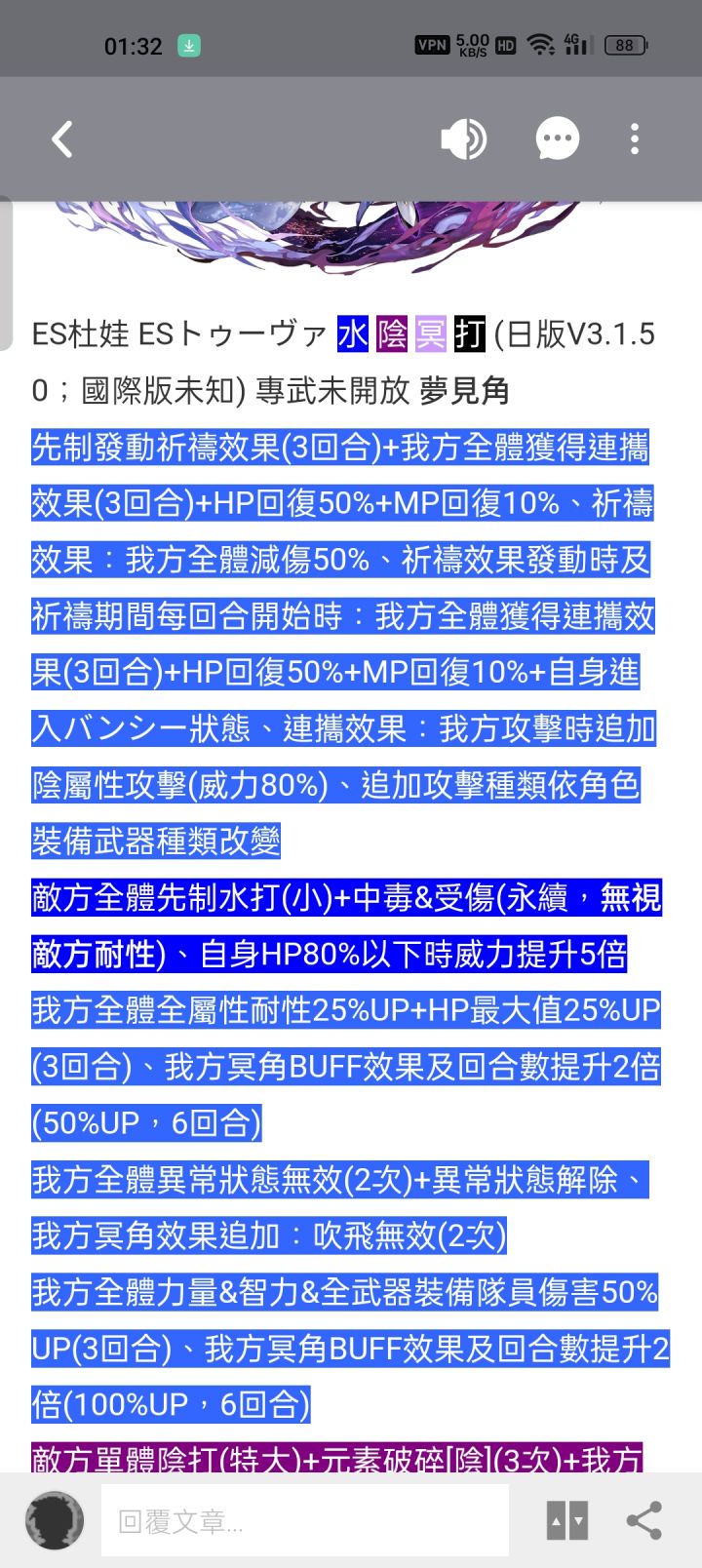 3:es多娃日服千里眼是在白狼之前,白狼大概率是周年角色,伴随外史终章。所以es多娃大概率可进自选,技能如图所示,es多娃才是真正辅助八云提升伤害和缩短回合的关键。