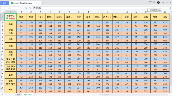 因为帮助里暂时还是小图的价格表,但是我不玩小图啊vov,干脆自己弄了大图的粮草装备价格表