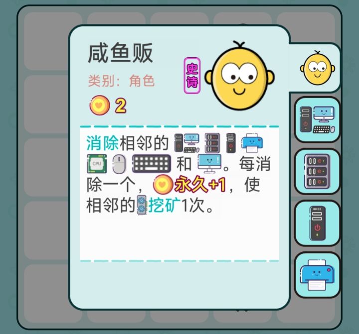4、调整咸鱼贩,消除工具,可使相邻显卡挖矿1次。
