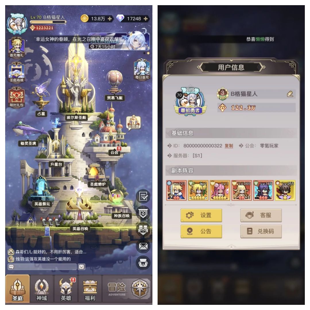 ④注意事项:由于猫星人在游戏前期抽到了一张英雄王(可开心了),于是就在英雄商店换了2个,升了8星,万万没想到后面又抽到了2张深渊魅魔(难受到家了),如果当时换的是深渊魅魔,那深渊魅魔就可以上9星了,还可以吃到输出的魔典加成,战力应该在310w左右了(后续玩家在提升战力的时候可以避坑),此外空岛盛典活动要出了,能不能9天提升百万战力,就看这次活动咯,不得不说,对于零氪党而言,耀光试炼(30天进阶400w战力)十分具有挑战性,欢迎各位玩家踊跃尝试哈~