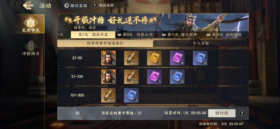 5. 冲榜活动:开服前半个月会有多个榜单活动去获取武将,这些武将前面都是抽不到的,只能通过活动拿碎片获取,每个榜单前20有整卡,前100有碎片,当然这些卡后面也会出现在大卡包,不是说绝版。