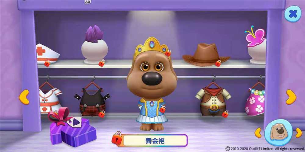 狗狗本一身棕色,圆滚滚的大眼睛,耳朵是下垂靠后式的,鼻子大大的一个。看起来带着些许王者风范,那就为它搭配一身舞会袍,带上特质的皇冠,有点那意思了哈。