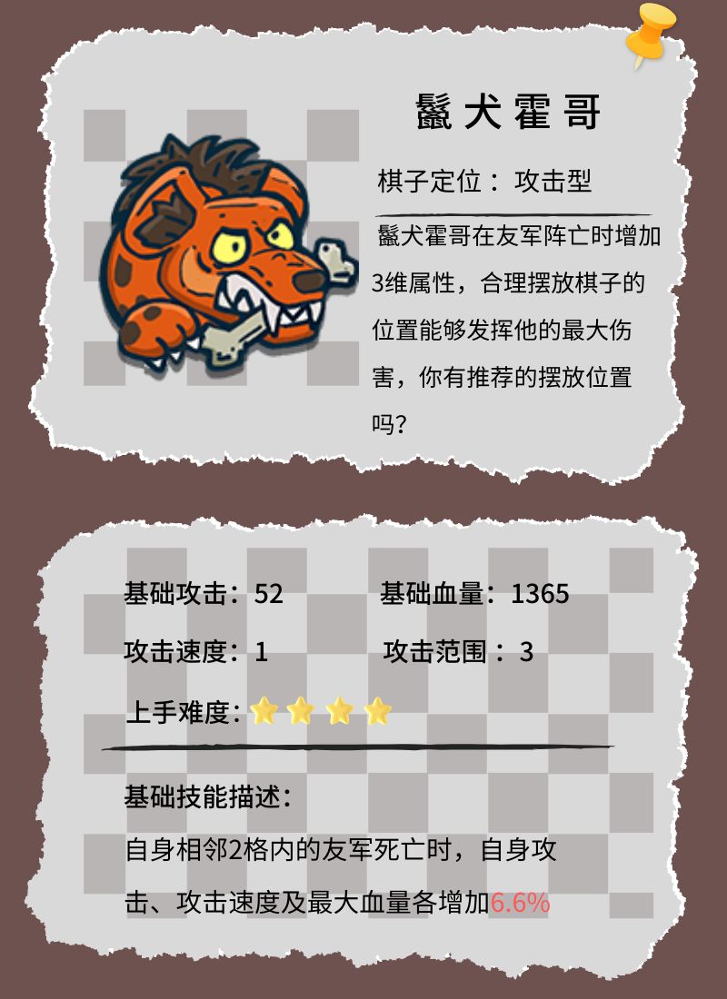 鬣犬霍哥有着棋盘清道夫或队友祭天法力无边