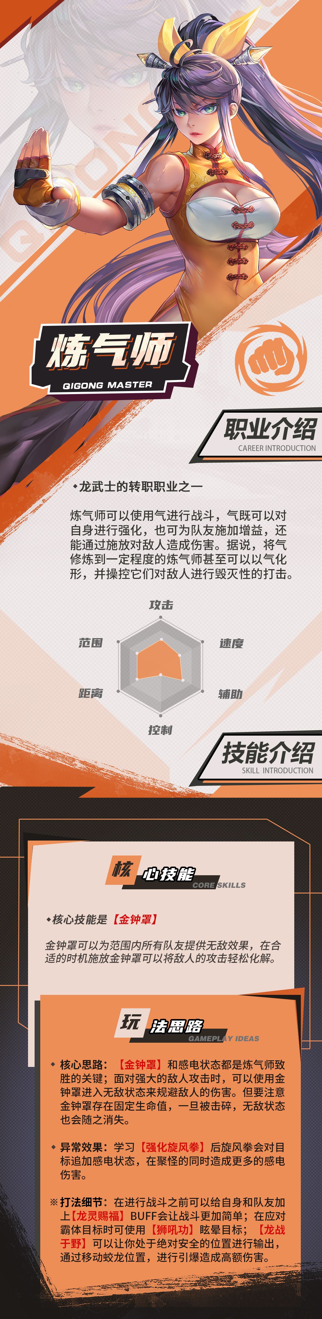 『炼气师』是龙武士的转职之一,她们可以使用气进行战斗,气既可以对自身进行强化,也可为队友施加增益,还能通过施放对敌人造成伤害。据说,将气修炼到一定程度的炼气师甚至可以以气化形,并操控它们对敌人进行毁灭性的打击。