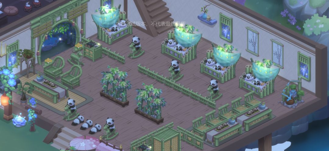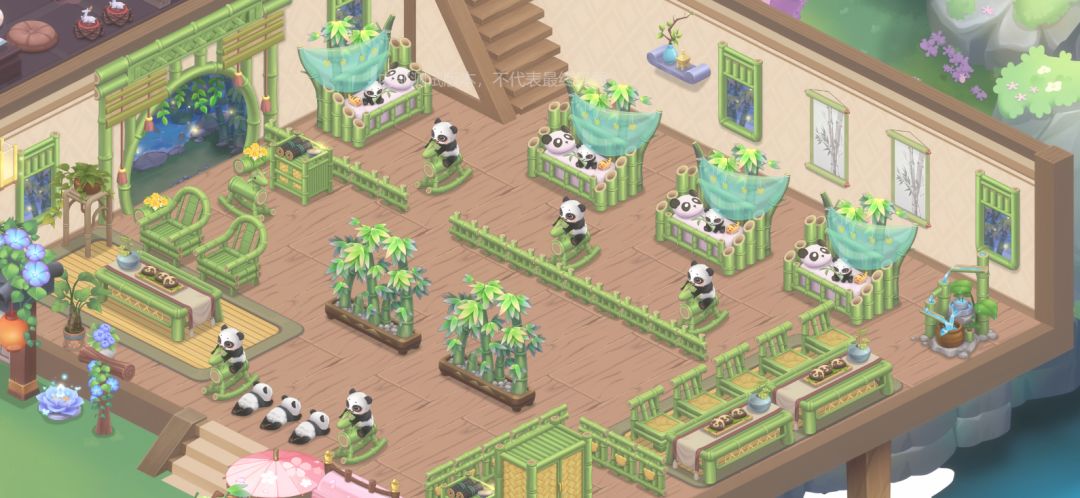 青竹家具的外观线条圆润,色彩翠绿,仿佛正在散发着竹子清香的气息,给人一种温馨和舒适的感觉。家具上的各式各样的熊猫宝宝形象更是让整个空间充满了可爱和活力,仿佛真的置身于一个熊猫的乐园。