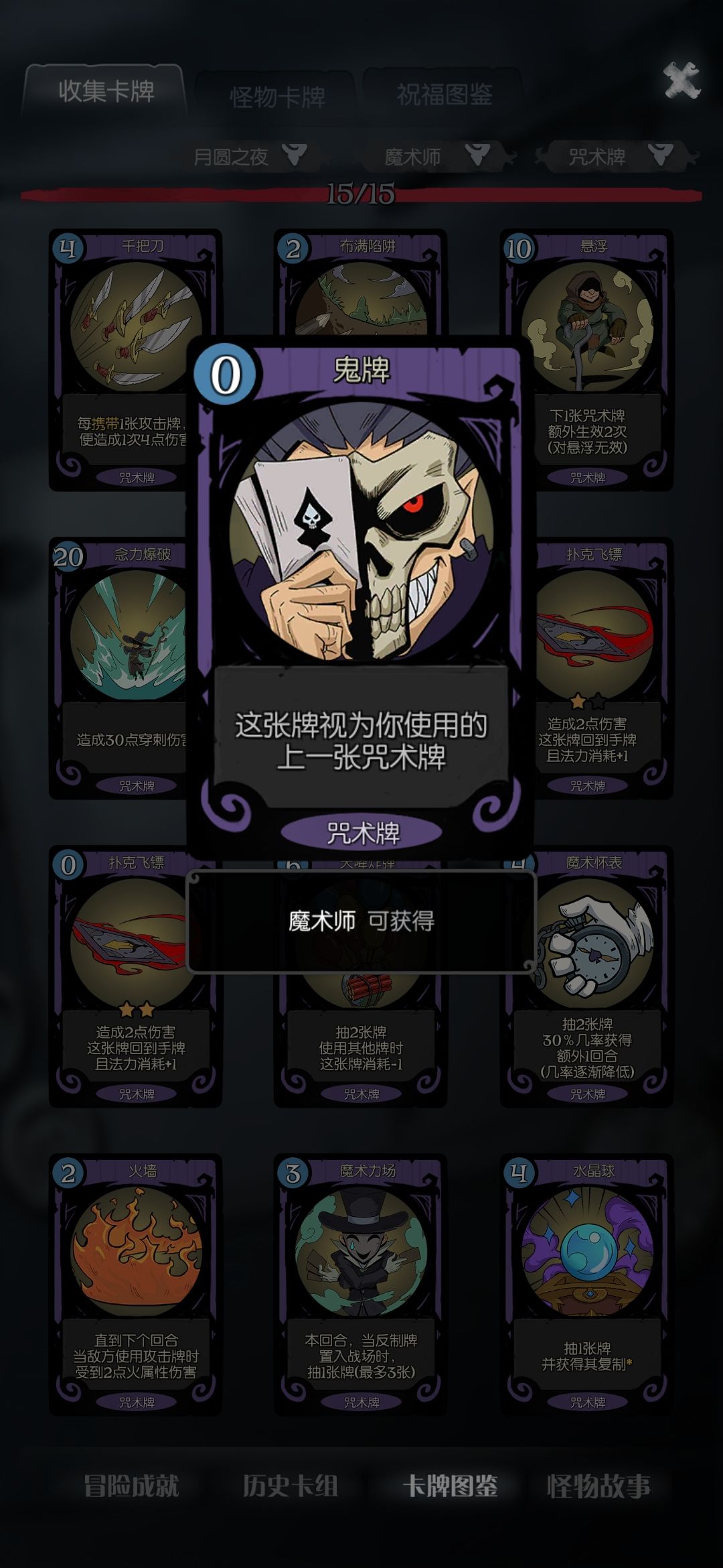 核心卡key卡4:鬼牌,复制类的卡牌对该流派的加成都是翻倍的,这卡一二章都可以拿到 悬浮其实也可 ,但是前期蓝耗高 脸黑没有回复的话就挺尬的?后面发现其实没有鬼牌也可以 可以拿两张飞刀哈哈 两飞刀两惊魂可以试试