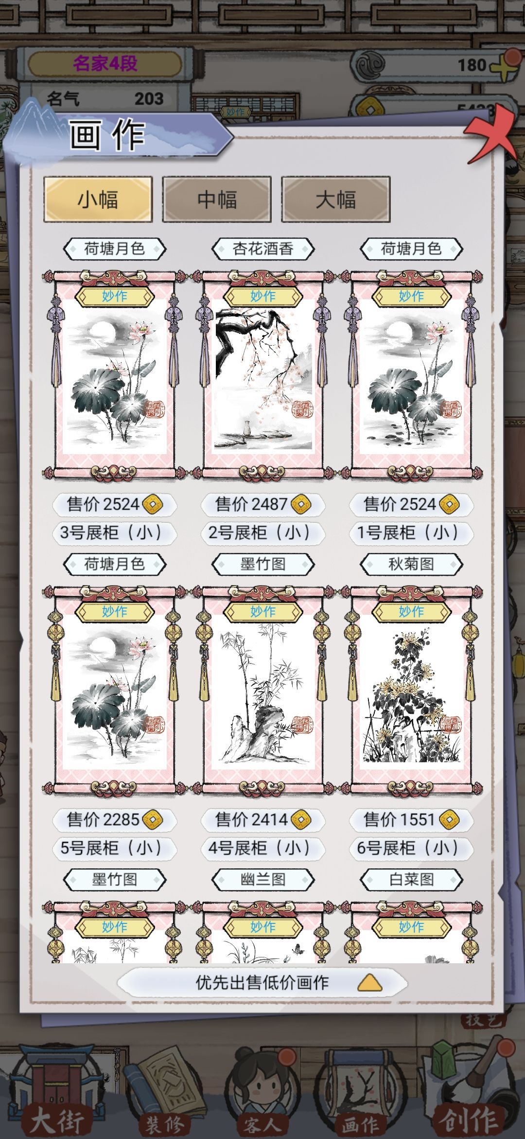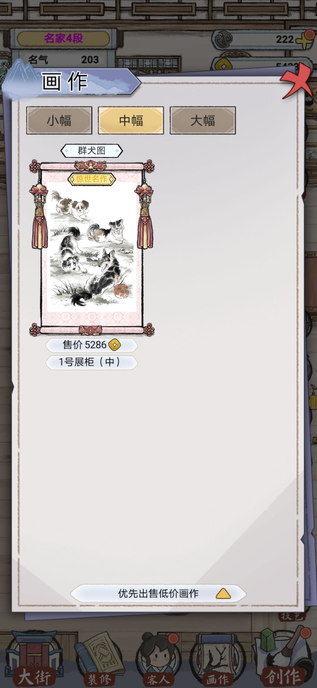 4:发现这一点,还是因为自动写出来了一个惊世名作我就奇怪,我的评分怎么会这么高?才知道一套会有加成,然后我就试了一下,一套紫的比四个红的还高,然后我的小幅画,因为红色和橙色都还各差一个,只能自动写出妙作,在这里表示好气愤