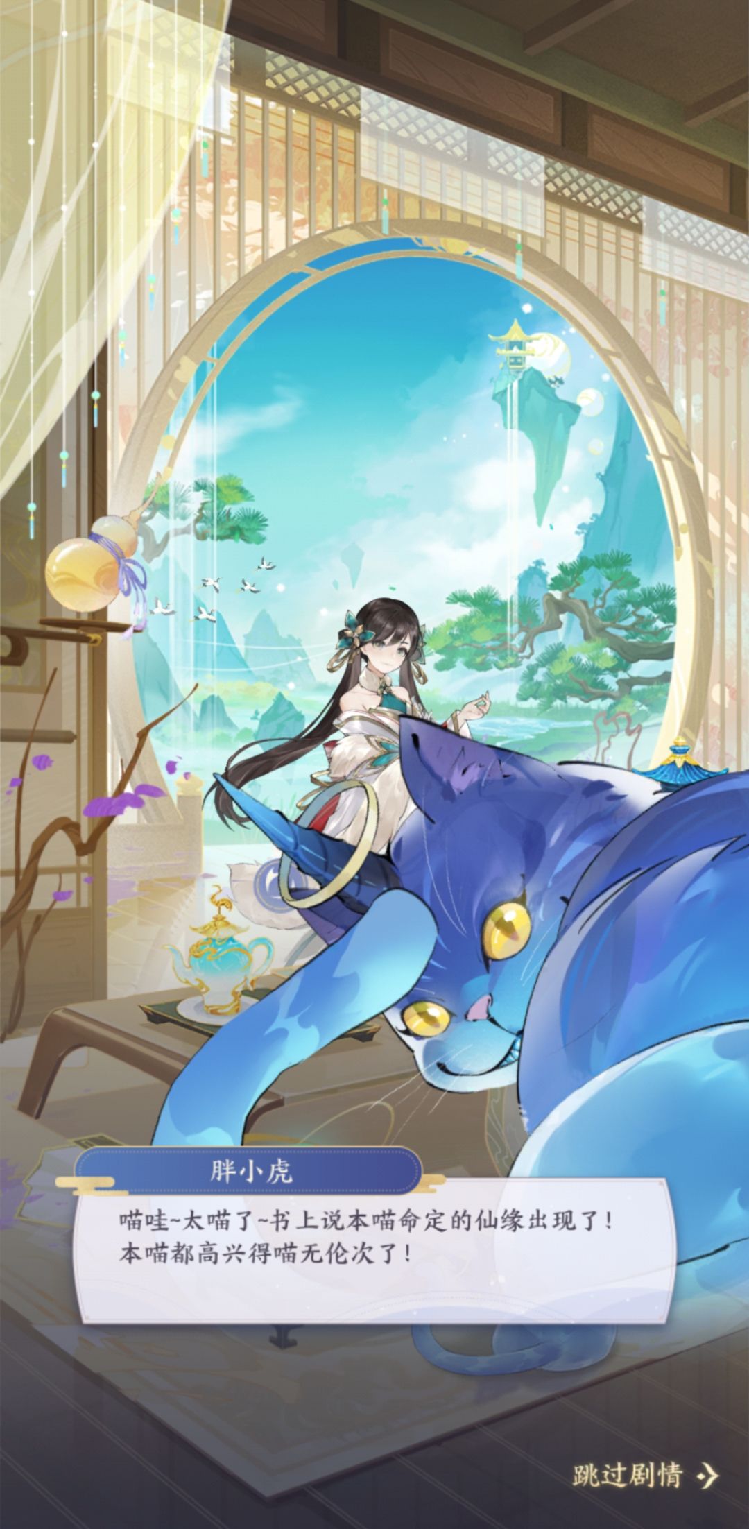 进入洞府遇到蓝猫点击后告诉你它在收集十二生肖印记,请好大哥继续帮忙。